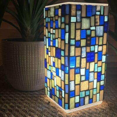 Üvegmozaik lámpa – kék-zöld-sárga kerek