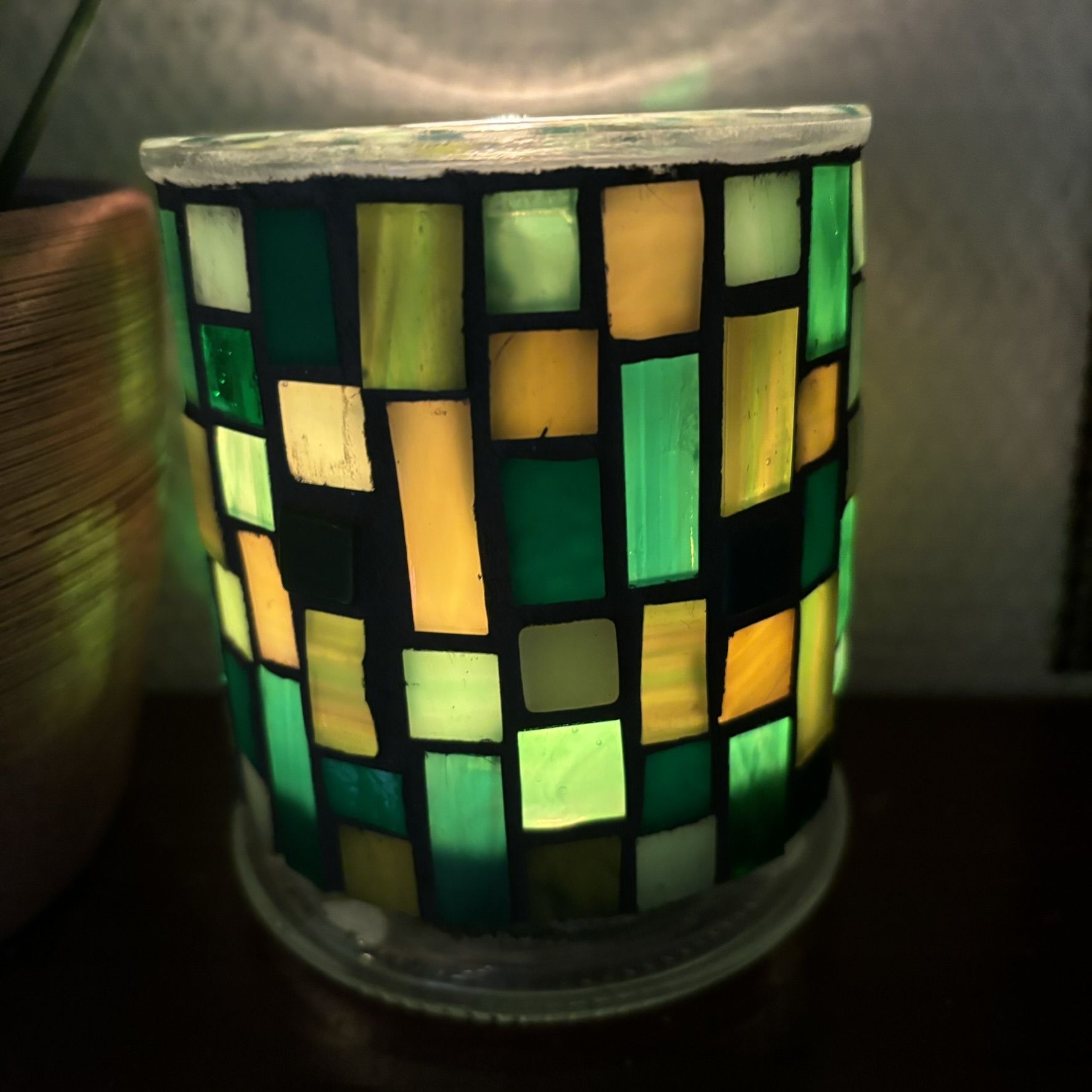 Üvegmozaik gyertya/mécsestartó – zöld-sárga
