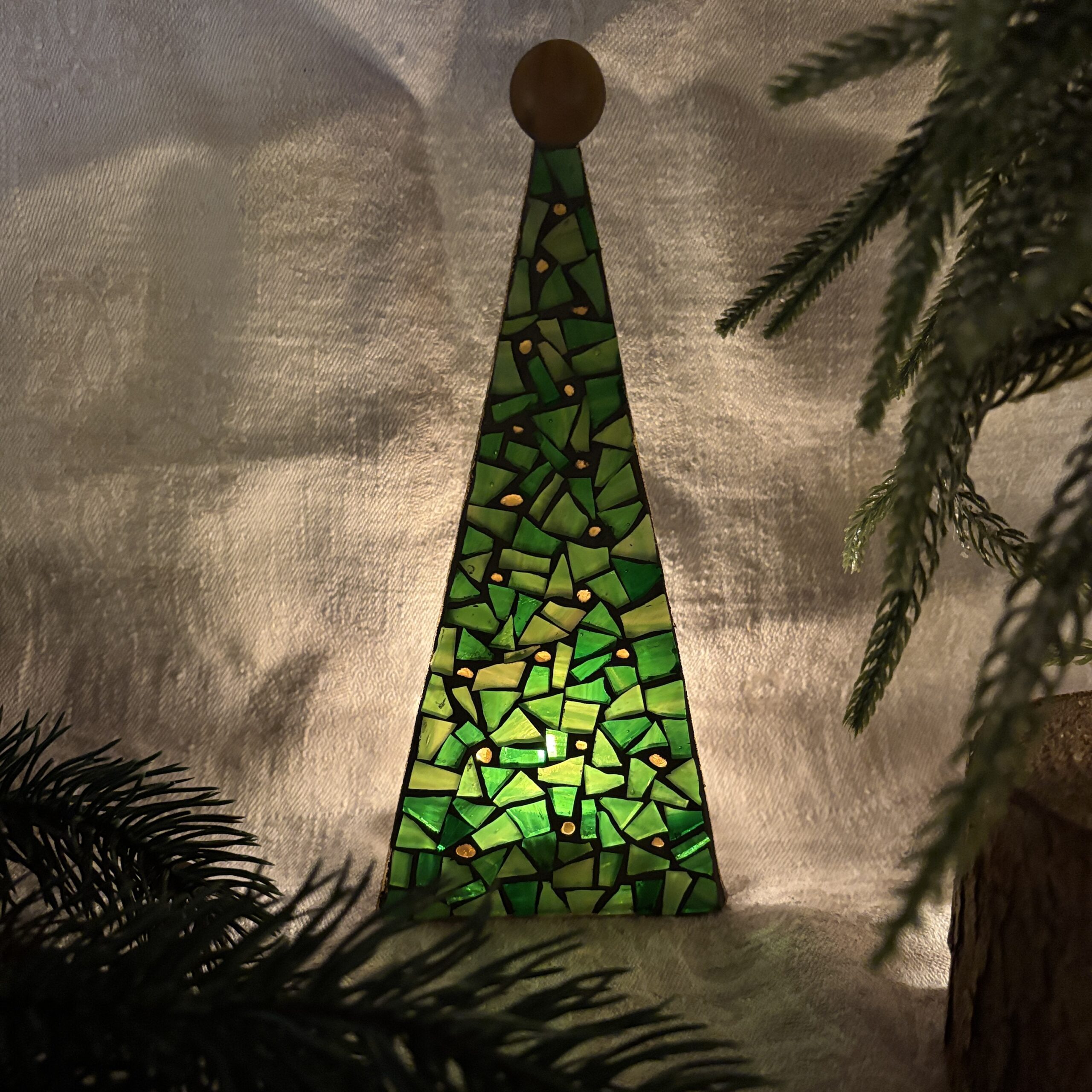 Üvegmozaik karácsonyfa mécsestartó
